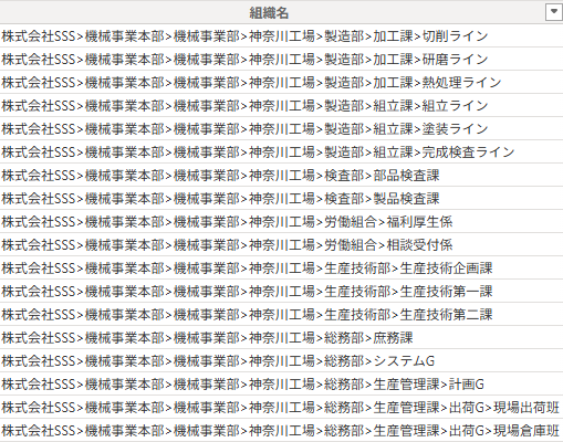 会社や工場の組織名は、次のように階層を「>」でつないで表記することがあります。